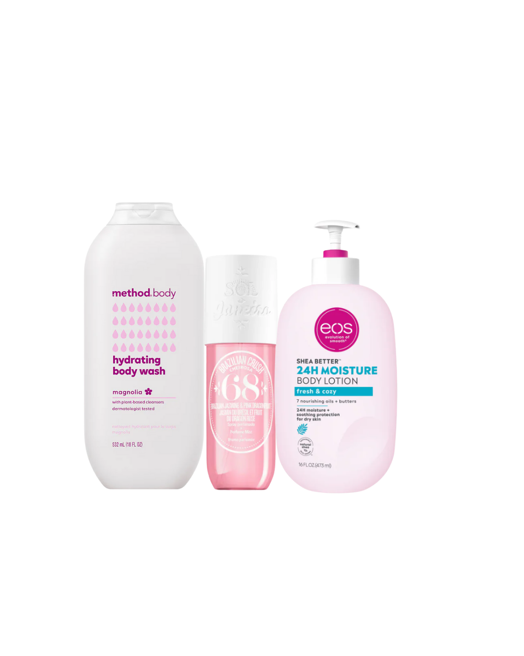 El Fresh & Floral Girl Set es un kit de cuidado corporal ideal para quienes aman los aromas frescos y florales. Incluye gel de baño Magnolia de Method Body, que limpia suavemente la piel con una fragancia floral delicada; body mist 68 de Sol de Janeiro, con notas frescas y femeninas que aportan un aroma ligero y duradero; y la crema corporal EOS Fresh & Cozy, que hidrata profundamente dejando la piel suave y confortable.